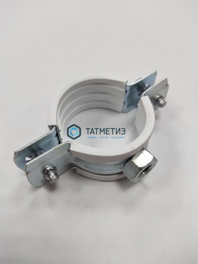 Хомут 20-24мм (1/2") сантехнический с гайкой М8 БЕЛЫЙ уплотнит.