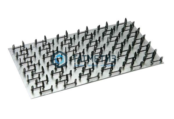 Пластина изготовлена из оцинкованной стали толщиной 1,2 мм методом холодной штамповки, зубцы имеют высоту 8 мм.